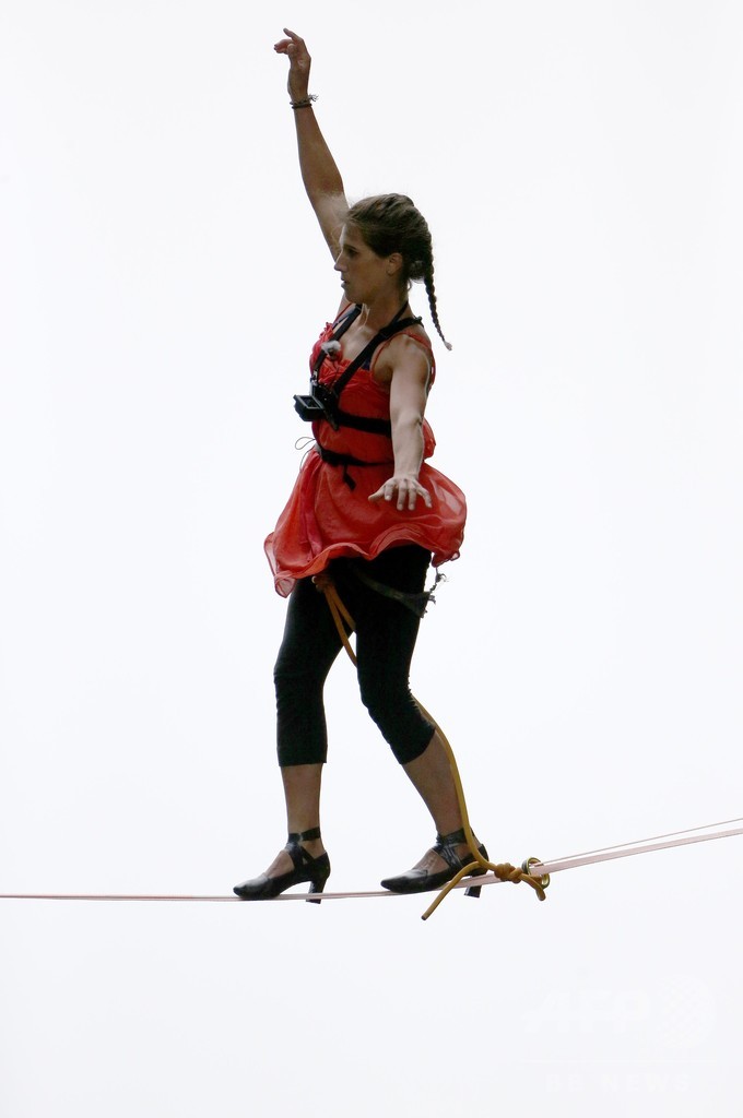 極限の綱渡りはハイヒールで 高さ1300メートル、湖南