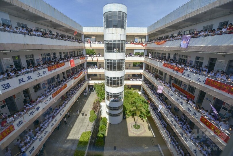 【6月3日 CNS】中国の全国統一大学入学試験「高考(Gaokao)」を目前に控え、海南省(Hainan)の公立高校、海南華僑中学で31日、毎年この時期恒例の「高考文明喊楼(大声で叫ぶ)」活動が行われた。