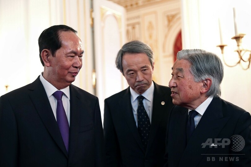 【6月3日 AFP】天皇、皇后両陛下は2日、東京・元赤坂の迎賓館を訪れ、離日を控えたベトナムのチャン・ダイ・クアン(Tran Dai Quang)国家主席夫妻に別れのあいさつをされた。クアン国家主席は国賓として先月末に来日していた。(c)AFP