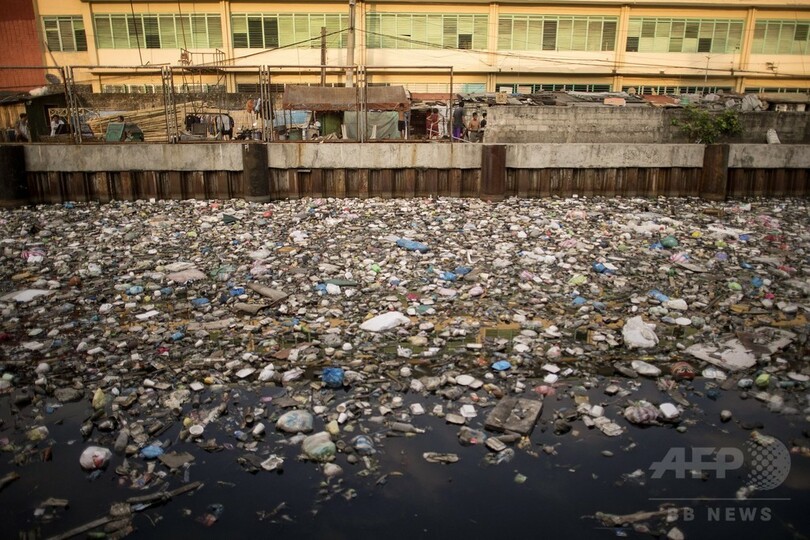 まるで「舗道」、ぎっしり川を覆うごみ マニラ