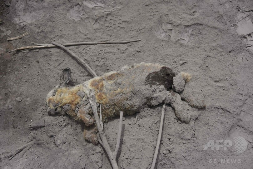 噴火の被害を受けた山の村々では遺体の捜索活動が行われているが、地形の特徴や、火山から下りてきた大量の岩や火山灰、高温の泥のため遅々として進んでいない。(c)AFP/Henry MORALES et Edgar CALDERON