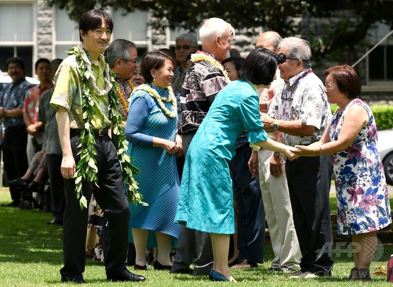 秋篠宮ご夫妻は、日本人のハワイ州移住150周年を記念する式典に出席するため、同州を訪問されている。(c)AFP