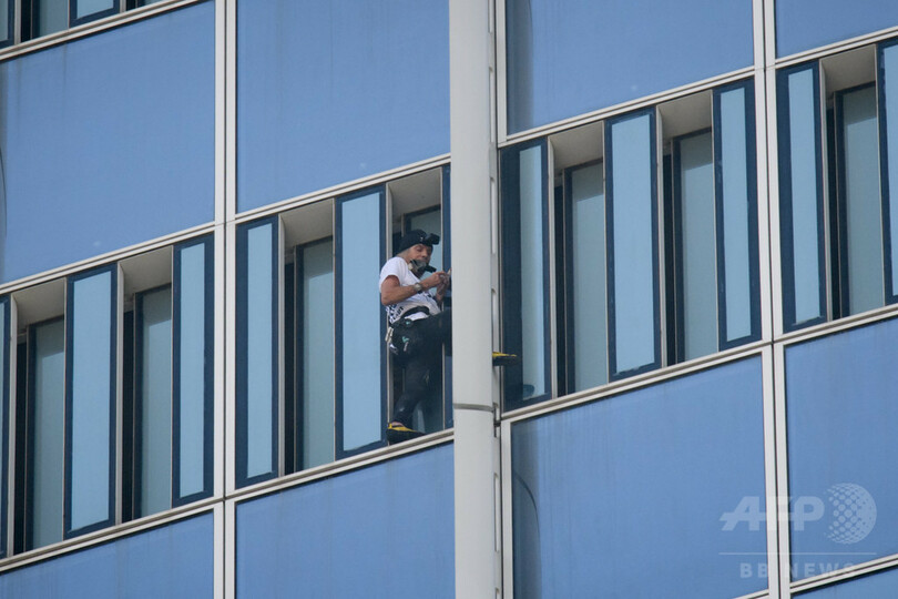 ロベールさんは世界で5番目に高い123階建てのビル「ロッテワールドタワー(Lotte World Tower)」に、ロープを使わず素手で登る一方、建物のスタッフらは内部からロベールさんを追跡。結局、メンテナンス用のゴンドラで屋上に連れて行かれ、逮捕された。