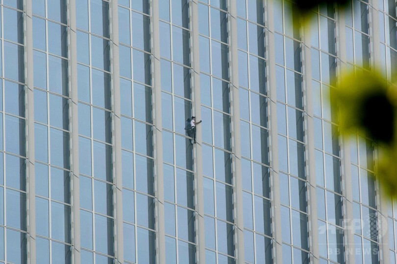 ロベールさんは世界で5番目に高い123階建てのビル「ロッテワールドタワー(Lotte World Tower)」に、ロープを使わず素手で登る一方、建物のスタッフらは内部からロベールさんを追跡。結局、メンテナンス用のゴンドラで屋上に連れて行かれ、逮捕された。