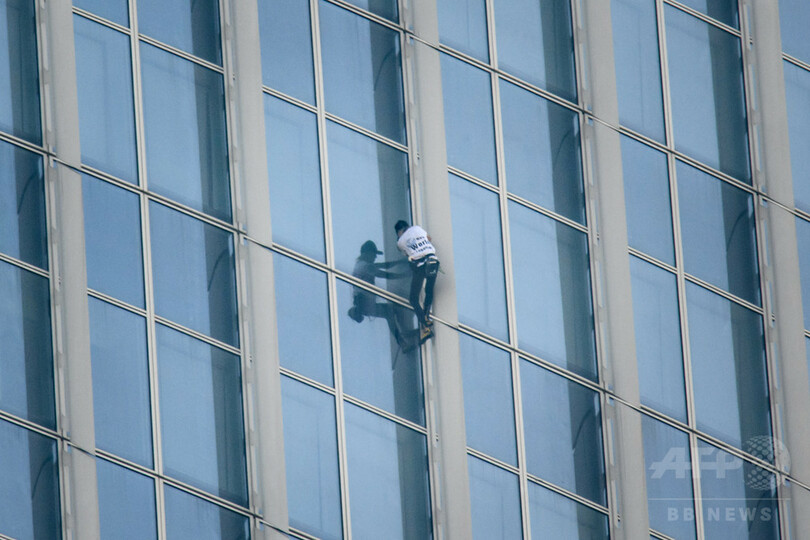 ロベールさんは世界で5番目に高い123階建てのビル「ロッテワールドタワー(Lotte World Tower)」に、ロープを使わず素手で登る一方、建物のスタッフらは内部からロベールさんを追跡。結局、メンテナンス用のゴンドラで屋上に連れて行かれ、逮捕された。