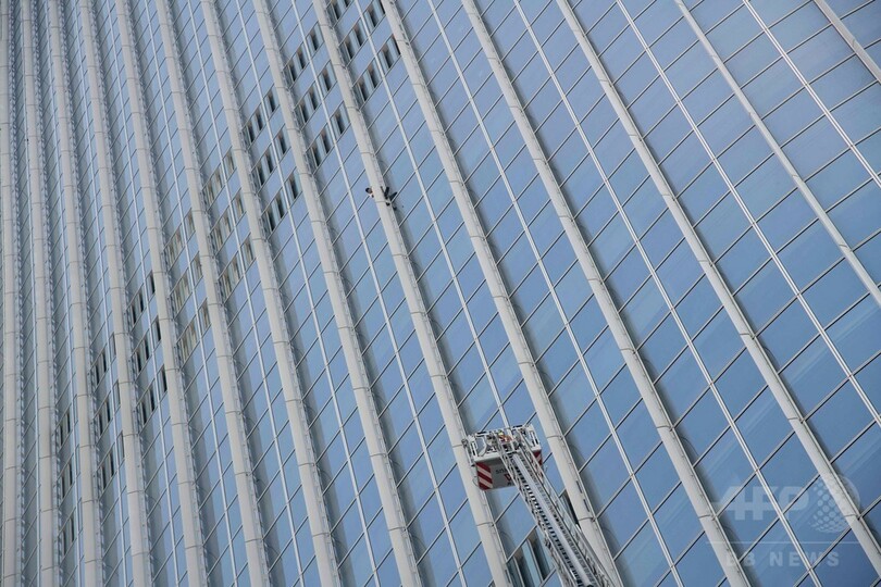ロベールさんは世界で5番目に高い123階建てのビル「ロッテワールドタワー(Lotte World Tower)」に、ロープを使わず素手で登る一方、建物のスタッフらは内部からロベールさんを追跡。結局、メンテナンス用のゴンドラで屋上に連れて行かれ、逮捕された。