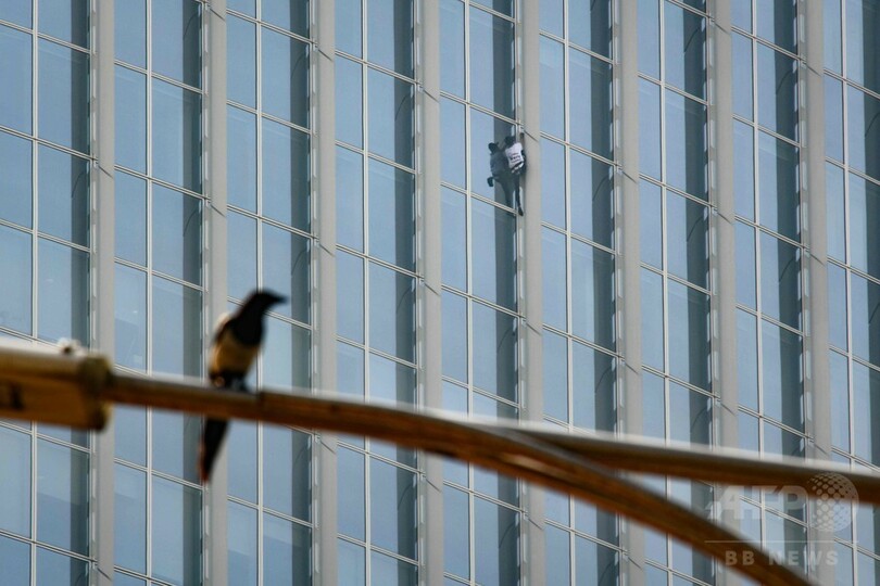 ロベールさんは世界で5番目に高い123階建てのビル「ロッテワールドタワー(Lotte World Tower)」に、ロープを使わず素手で登る一方、建物のスタッフらは内部からロベールさんを追跡。結局、メンテナンス用のゴンドラで屋上に連れて行かれ、逮捕された。