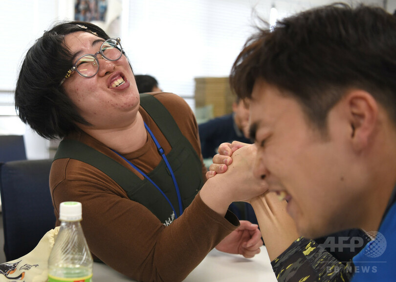 「リンクライン」の神原薫代表の周りには、昼休みになると父や兄のように慕う従業員が集まる(2018年5月9日撮影)。(c)AFPBB News/Yoko Akiyoshi
