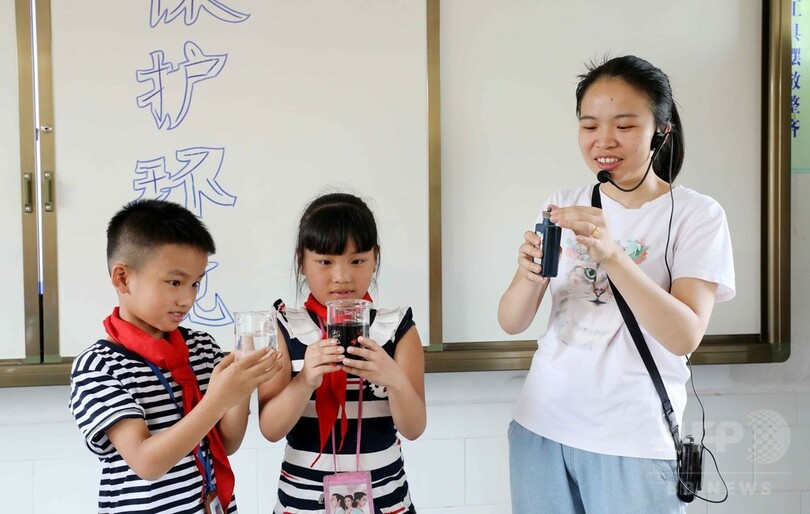 児童らは、地球を守るためになすべきことや環境汚染の危険性についての授業を受けたり、「ゴミを宝に変える」工作イベントやエゴミの分別回収を勉強したり、環境を大切にする習慣を養うためのさまざまな活動に参加した。(c)CNS/JCM/AFPBB News