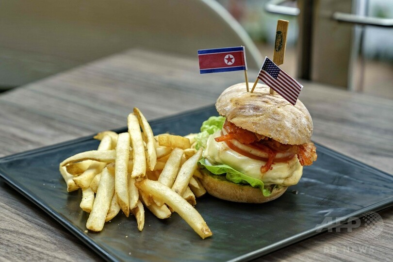 12日に予定される米国のドナルド・トランプ(Donald Trump)大統領と北朝鮮の金正恩(キム・ジョンウン、Kim Jong Un)朝鮮労働党委員長の会談を前に、シンガポールでは多くの飲食店などが会談に便乗し、新メニューを提供している。