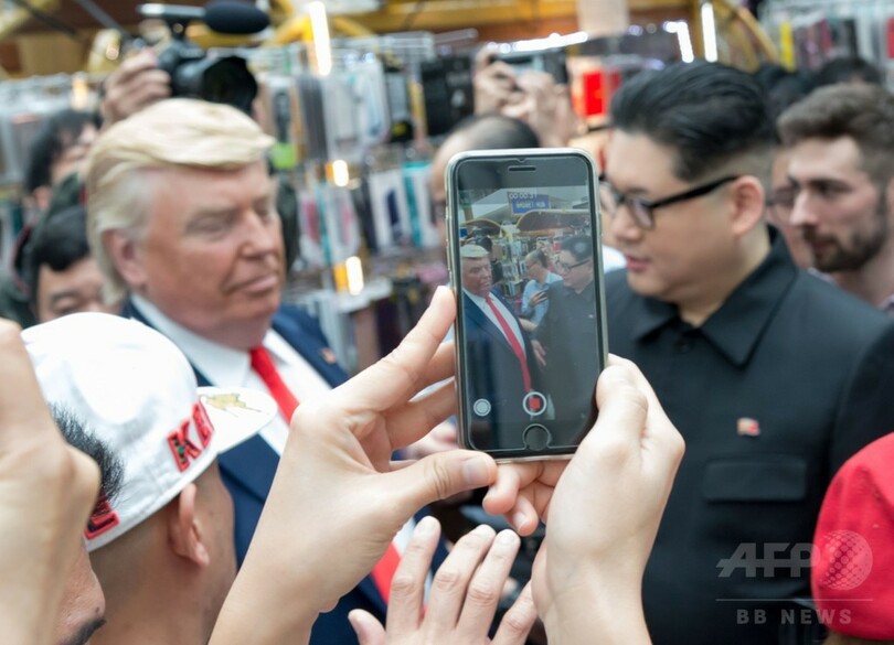 中心地にあるショッピングモール「ブギスジャンクション(Bugis Junction)」で行われた、「『真の』トランプ・金首脳会談」と題されたイベントに登場したのは、ハワードX(Howard X)の芸名で活動する金委員長のそっくりさんと、トランプ大統領に扮(ふん)したデニス・アラン(Dennis Alan)さん。2人は、手を振るなどしながら、集まっていた買い物客らの間を歩いた。
