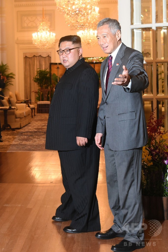 金委員長は、米朝首脳会談の開催地受け入れに対し謝意を表明。「もし首脳会談が成功すれば、シンガポールの人々の努力は歴史に刻まれるだろう」と述べた。(c)AFP