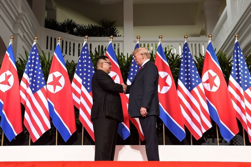 会談では朝鮮戦争以来続いてきた対立関係の終結を模索。トランプ氏は会談に先立ち、ツイッター(Twitter)に「過去と異なる真のディール(取引)がまとまるかどうか、間もなく分かる!」と投稿している。(c)AFP