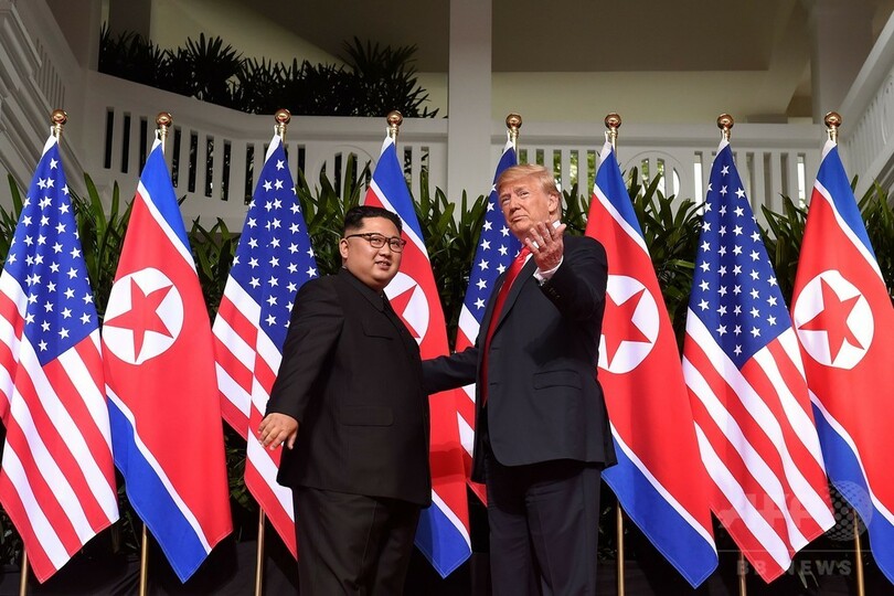 会談では朝鮮戦争以来続いてきた対立関係の終結を模索。トランプ氏は会談に先立ち、ツイッター(Twitter)に「過去と異なる真のディール(取引)がまとまるかどうか、間もなく分かる!」と投稿している。(c)AFP