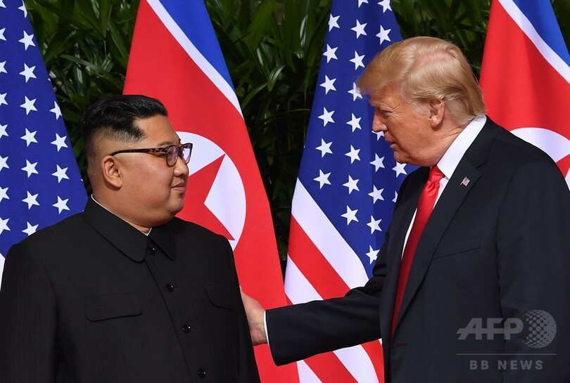 会談では朝鮮戦争以来続いてきた対立関係の終結を模索。トランプ氏は会談に先立ち、ツイッター(Twitter)に「過去と異なる真のディール(取引)がまとまるかどうか、間もなく分かる!」と投稿している。(c)AFP