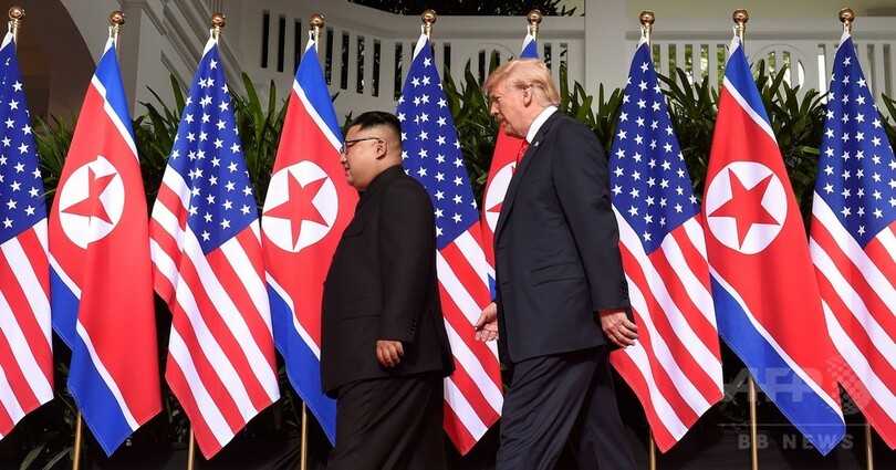 会談では朝鮮戦争以来続いてきた対立関係の終結を模索。トランプ氏は会談に先立ち、ツイッター(Twitter)に「過去と異なる真のディール(取引)がまとまるかどうか、間もなく分かる!」と投稿している。(c)AFP