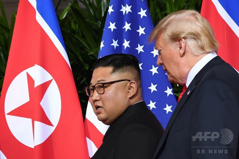 会談では朝鮮戦争以来続いてきた対立関係の終結を模索。トランプ氏は会談に先立ち、ツイッター(Twitter)に「過去と異なる真のディール(取引)がまとまるかどうか、間もなく分かる!」と投稿している。(c)AFP