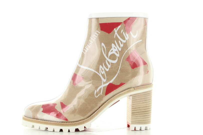 「ルビ イン プログレス」は、ショッピングバッグやシューズボックスに使われクラフト紙を使ったシューズが主役のコレクション。“誰かのゴミが、他の誰かにとっては宝物になる”という考えに基づき1990年代末に発表したミュール「トラッシュ」の技法が用いられている。レッドライン入りのショッピングバッグやシューズボックスに使われ、ルブタンの作品たちを守り続けていた素材であるクラフト紙を手作業でカットしてコラージュし、PVC素材を重ねたデザインが特徴だ。