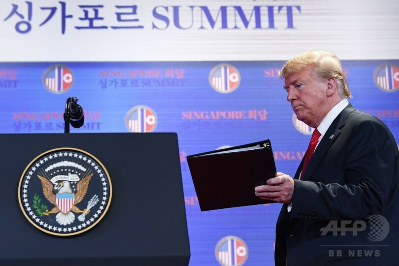 【6月12日 AFP】(更新、写真追加)シンガポールで北朝鮮の金正恩(キム・ジョンウン、Kim Jong-Un)朝鮮労働党委員長と歴史的な会談に臨んだドナルド・トランプ(Donald Trump)米大統領は12日、記者会見を行い、朝鮮戦争(Korean War)は近く終結するとの期待を示した。