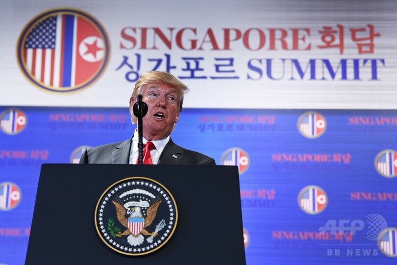 【6月12日 AFP】(更新、写真追加)シンガポールで北朝鮮の金正恩(キム・ジョンウン、Kim Jong-Un)朝鮮労働党委員長と歴史的な会談に臨んだドナルド・トランプ(Donald Trump)米大統領は12日、記者会見を行い、朝鮮戦争(Korean War)は近く終結するとの期待を示した。