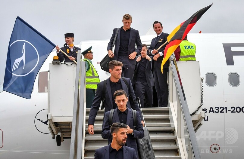 ブラジルに並ぶ最多タイ5回目のW杯制覇を狙うドイツは、モスクワ近くのブヌコボ空港(Vnukovo airport)に到着した。グループFに入っているドイツは、17日のメキシコ戦でチーム初戦を迎え、その後スウェーデン、韓国と対戦する。