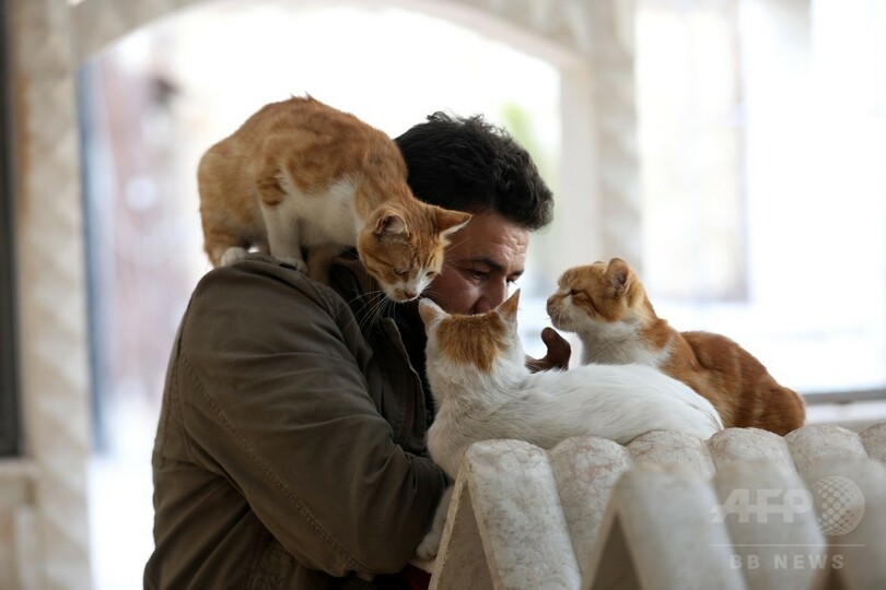 「人間に情けをかけたいと思うなら、その他の全ての動物にも情けを示してほしい」と、保護施設「アーネスト・キャット・サンクチュアリ(Ernesto's Cat Sanctuary)」を運営するジャリールさんは言う。施設の名前はお気に入りの猫の名前にちなんでつけた。ジャリールさんはシリア第2の都市アレッポで育ったが、少年のころから猫が大好きだった。