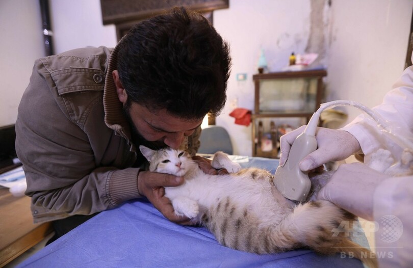 【6月19日 AFP】反体制派が支配するシリア北部という意外な場所に、猫の保護施設がある。モハメド・アラ・ジャリールさん(43)は妊娠中の猫の背中を優しく抱き、そのおなかに超音波検査機を当てている。