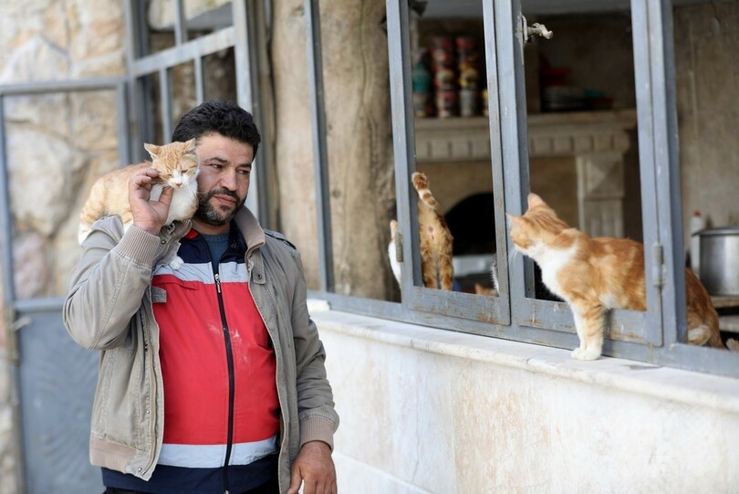 「人間に情けをかけたいと思うなら、その他の全ての動物にも情けを示してほしい」と、保護施設「アーネスト・キャット・サンクチュアリ(Ernesto's Cat Sanctuary)」を運営するジャリールさんは言う。施設の名前はお気に入りの猫の名前にちなんでつけた。ジャリールさんはシリア第2の都市アレッポで育ったが、少年のころから猫が大好きだった。
