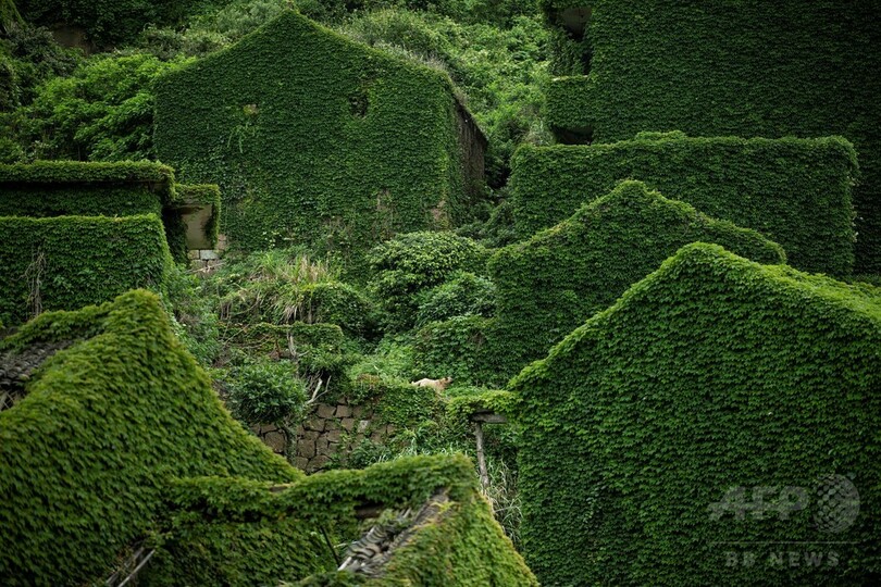シェンシャン(Shengshan)島の後頭湾(Houtouwan)村は、かつて漁村として栄えていた。だが、今では誰もいなくなり、急な斜面に張り付くように立っている頑丈なレンガ造りの家を、青々とした植物が完全に覆ってしまっている。