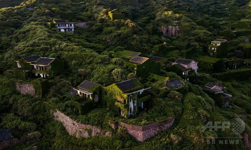 シェンシャン(Shengshan)島の後頭湾(Houtouwan)村は、かつて漁村として栄えていた。だが、今では誰もいなくなり、急な斜面に張り付くように立っている頑丈なレンガ造りの家を、青々とした植物が完全に覆ってしまっている。