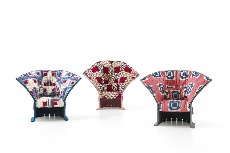 “フェルトリ”は、イタリアのデザイナー、ガエタノ・ペシェ(Gaetano Pesce)が「カッシーナ」のために1987年に製作したアームチェア。王座を皮肉に解釈した作品で、モダンアートとコンテンポラリーデザインの確立されたアイコンとなっている。ガエタノ・ペシェ作品を敬愛するシモンズは、自身が「文化的な交流(cultural correspondence)」と呼ぶプロジェクトを始めたいと「カッシーナ」に持ち掛けた。その結果、番号が振られたフェルトリ100脚が選ばれ、その生地に「カルバン・クライン」のブランドテーマを重ねることになった。各アームチェアにはアメリカ伝統のエアルームキルトが使われている。