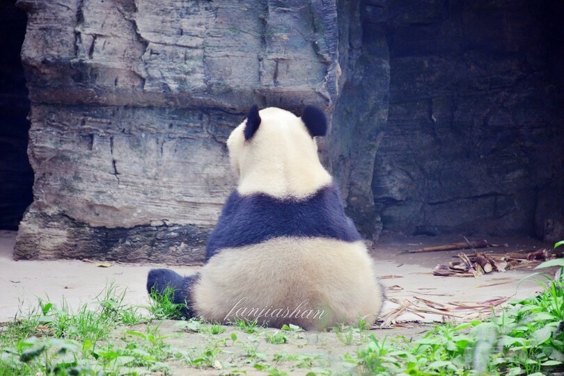 哀愁?ユーモア?パンダの背中に何思う 北京動物園