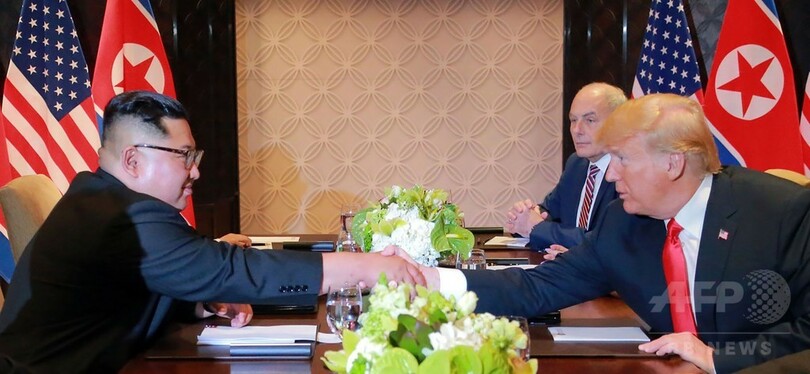 【6月14日 AFP】シンガポールでの歴史的な米朝首脳会談を終えたドナルド・トランプ(Donald Trump)米大統領は13日、北朝鮮の金正恩(キム・ジョンウン、Kim Jong Un)朝鮮労働党委員長との「ディール(取引、合意)」により同国の核の脅威がなくなり、世界がより安全な場所になったと満足げに断言した。トランプ氏は同日、米首都ワシントンに戻った。