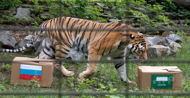 また同日には、ドイツ東部ケムニッツ(Chemnitz)にある動物園で、アムールトラの「ボロージャ」が同じくW杯開幕戦の結果を予想し、こちらは引き分けとなった。(c)AFP