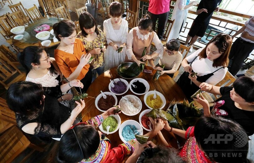 【6月17日 CNS】中国・広西チワン族自治区(Guangxi Zhuang Autonomous Region)柳州市(Liuzhou)融安県(Rongan)雅瑶郷(Yayao)の西古坡(Xigupo)集落で、村民と観光客が一緒に現地独特のちまき作りに挑戦し、中国伝統の端午節を祝った。