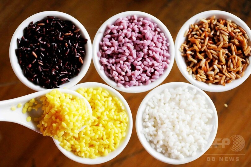 五色の食材で作られた色鮮やかな見た目と、香り豊かな柔かい食感が観光客に人気で、貧困脱出のための新たな収入源にもなっている。(c)CNS/JCM/AFPBB News