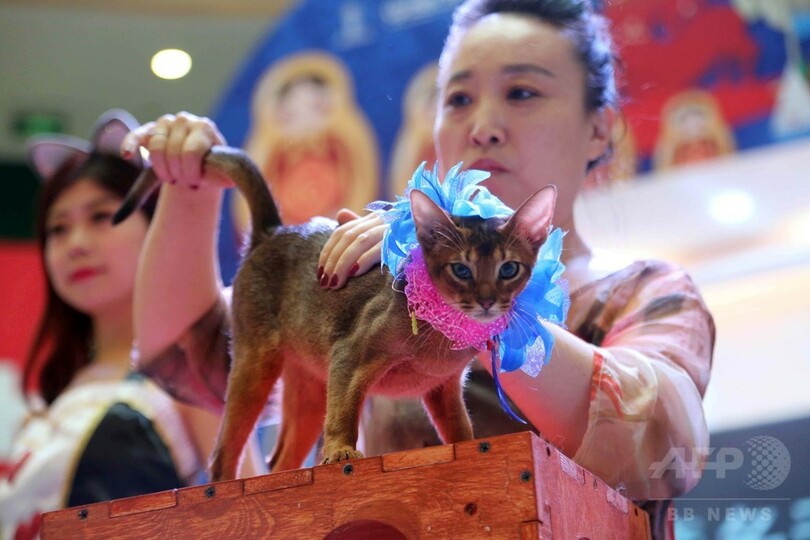 【6月22日 CNS】中国・遼寧省(Liaoning)瀋陽市(Shenyang)のショッピングモールで、猫のファッションショーが開かれた。