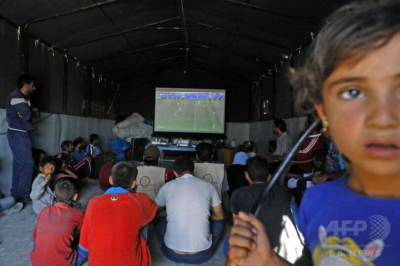 束の間の休息、シリア避難民キャンプでW杯観戦