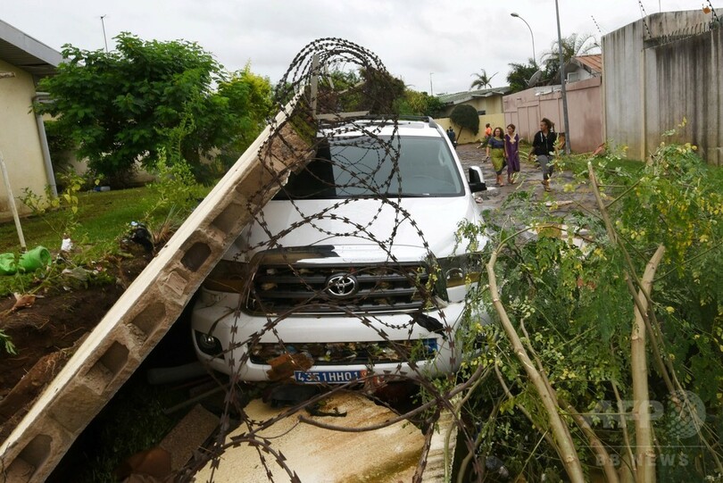 AFPの現地特派員によると、ココディおよび隣接するリビエラ(Riviera)地区では家屋数棟が浸水して壁が崩れ、多くの車が流されているという。(c)AFP