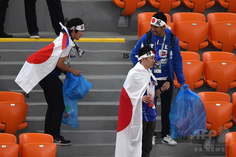 【6月25日 AFP】サッカー日本代表がW杯ロシア大会(2018 World Cup)で優勝する可能性は低いかもしれない。しかし、ファンは試合後の掃除など、その模範的な振る舞いでピッチ外の王者であることを示している。ここ数年の国際主要大会で起きた暴力行為を浄化するような彼らの行為には、他の国のファンからも感嘆の声が上がっているだけでなく、近年は欠かすことのできないW杯の風物詩となっている。