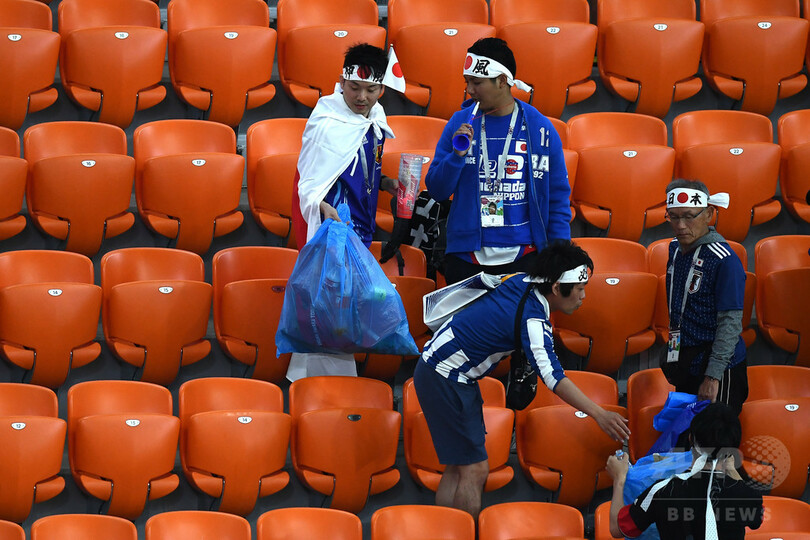 19日の試合でコロンビアを2-1で破る番狂わせを演じた日本代表は、W杯の舞台で初めて南米チームから勝利を収めたアジア勢となった。試合後に日本のファンはごみをかき集め、代表のチームカラーである青のプラスチック袋にそれを詰めた。コロンビアやセネガルのファンは、彼らの振る舞いに感銘を受けたようで、両国のファンは日本にならい試合後に掃除をしており、この影響で今大会は史上最も整然としたW杯になる可能性もある。
