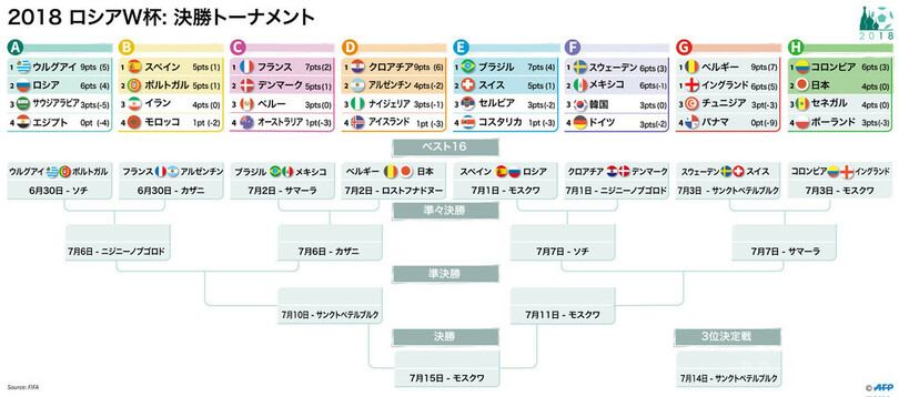 【図解】W杯ロシア大会ベスト16決定、日本はベルギーと激突