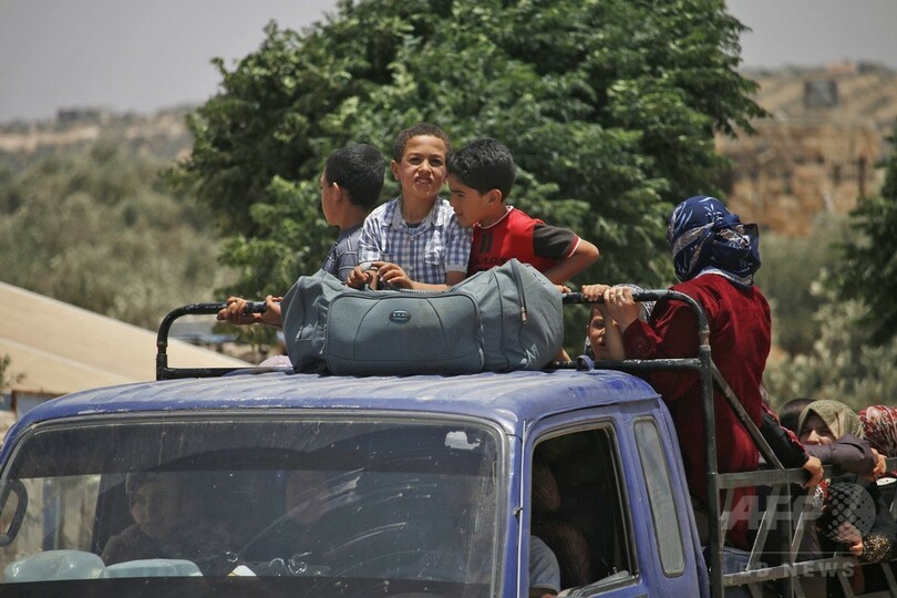 国連(UN)はシリア南部で75万人以上が危険にさらされているとしている。すでに5万人以上が避難し、その大半が封鎖されているヨルダンとの国境に向かっている。27日には国連安全保障理事会(UN Security Council)で英国、フランス、米国がシリア南部の戦闘で果たしている役割についてロシアを非難した。(c)AFP/Tony Gamal-Gabriel