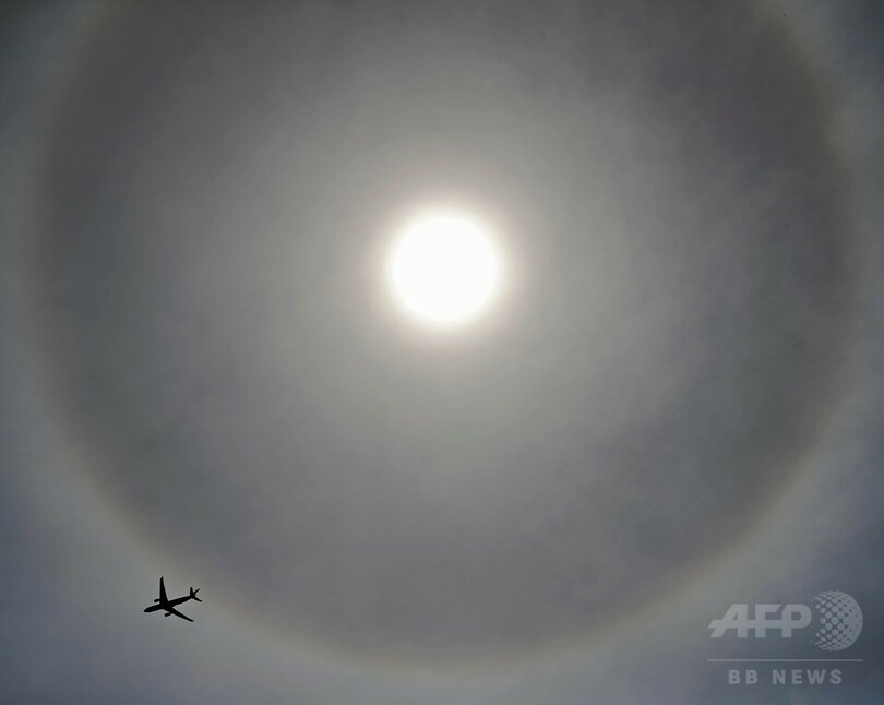 「白虹」とも呼ばれる一種の大気光学現象。太陽光が巻層雲を通過する際に、氷晶の屈折作用により現れる。(c)CNS/JCM/AFPBB News