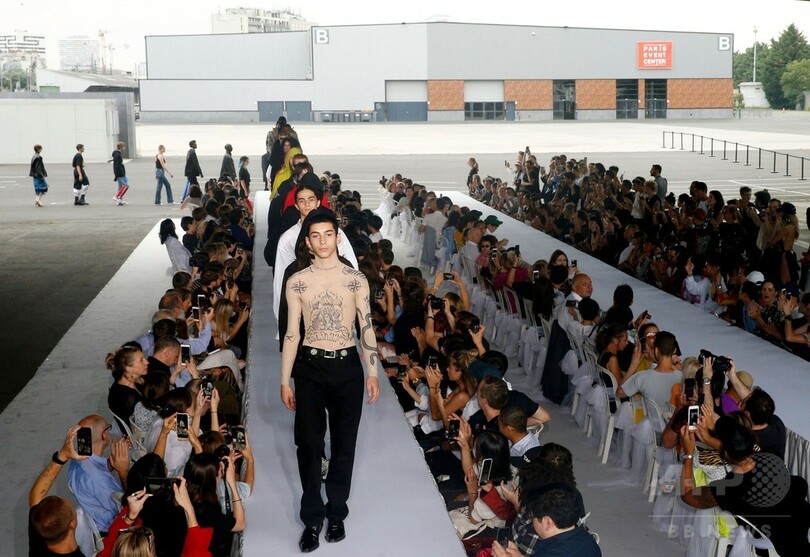 1日には、デムナ・ヴァザリア(Demna Gvasalia)が手がける「ヴェトモン(VETEMENTS)」が19年春夏コレクションを発表した。(c)AFP