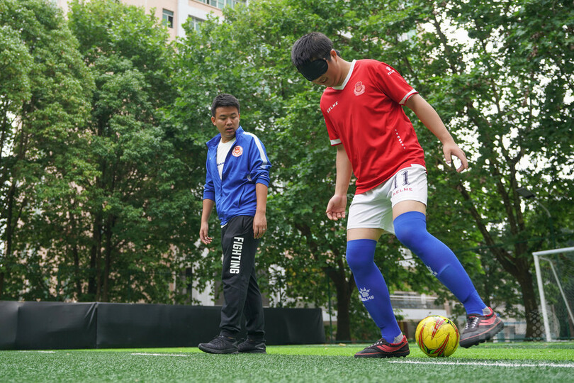 余進波(Yu Jinbo)コーチは、「グラウンド上で重要な判断要素となるのは音だ。ボールの位置やスピードなどを音で判断する能力は、それぞれの選手が把握しなければならない。フェイントを織り交ぜたドリブル技術などは、さらに練習を重ねなければならない。簡単な動作も、視覚障害者にとっては長い時間をかける必要があるのだ。心理的な恐怖心も克服しなければならない」と話した。
