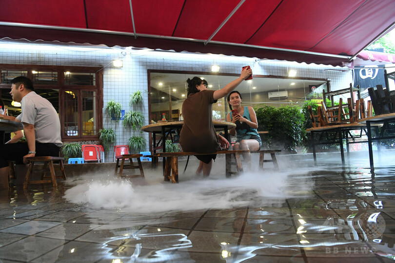 【7月10日 CNS】中国・重慶市(Chongqing)で、客が足を水に浸しながら火鍋を食べていた。