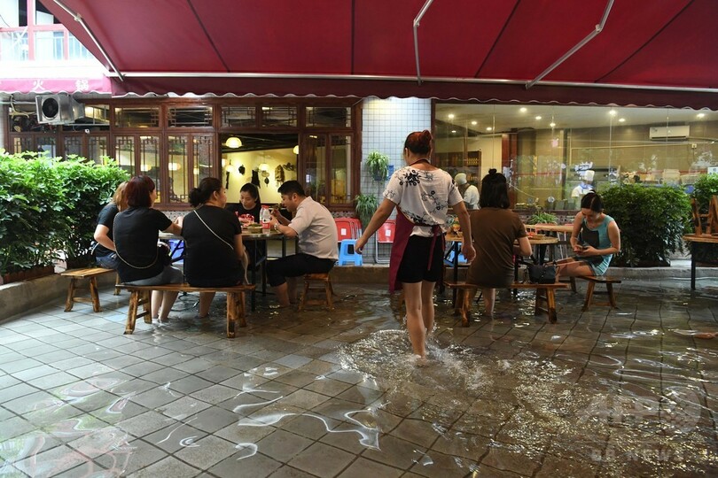 【7月10日 CNS】中国・重慶市(Chongqing)で、客が足を水に浸しながら火鍋を食べていた。