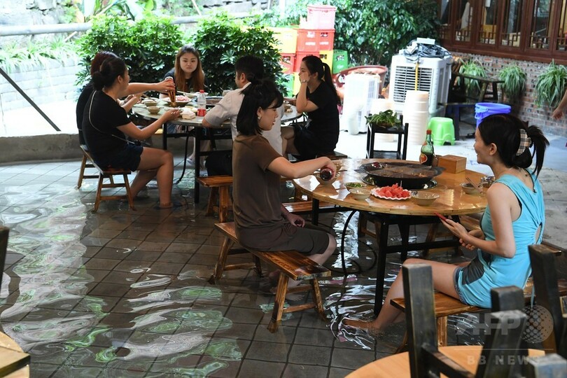 【7月10日 CNS】中国・重慶市(Chongqing)で、客が足を水に浸しながら火鍋を食べていた。