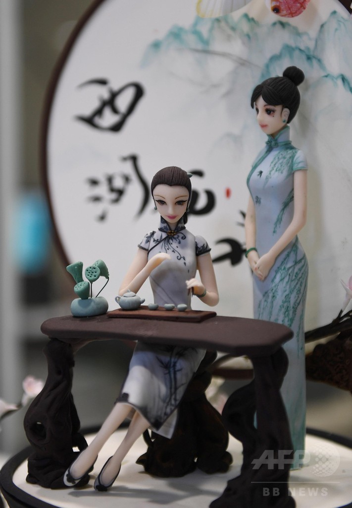 陳さんは浙江省の有名なパティシエだ。陳さんのパートナーである汪彗(Wang Hui)さんと共に、中国古代の伝説上の人物「白娘子(Bai Niang Zi)」や雷峰塔(Leifeng Pagoda)など杭州文化の象徴をフォンダントケーキに彫り、「江南の記憶」を広めている。(c)CNS/JCM/AFPBB News